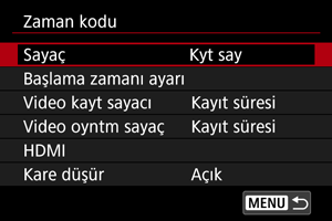 Süre kodunu ayarlamak için [: Zaman kodu] seçeneğini kullanın.