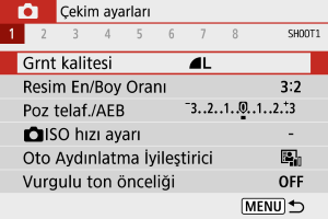 Dosya boyutu, mevcut çekim sayısı, maksimum seri çekim ve diğer tahmini değerler ile ilgili ayrıntılar için Dosya boyutu/mevcut çekim sayısı ve fotoğraflar için Maksimum seri çekim (yaklaşık çekim sayısı) konularına bakın.
