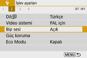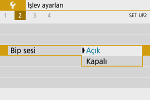 Odak onayı, otomatik zamanlayıcılı çekim ve diğer koşullar için bip sesini kapatır.