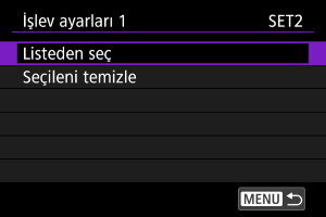[Listeden seç] seçildiğinde, makinede kayıtlı olan işlev ayarları listelenir. Kullanılacak işlev ayarlarını seçin.