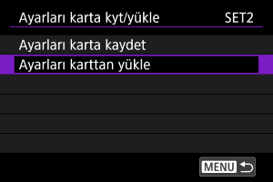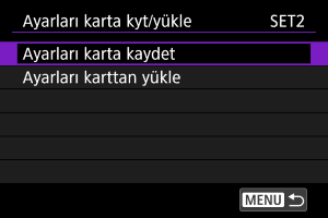 [Ayarları karta kyt/yükle] seçimi yapın.