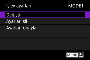 İşlev ayarlarını değiştirmek, eklemek veya silmek için seçin.