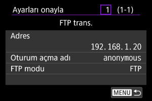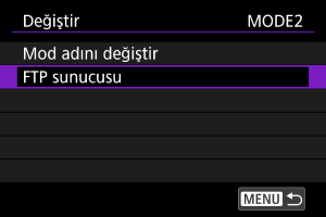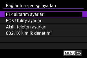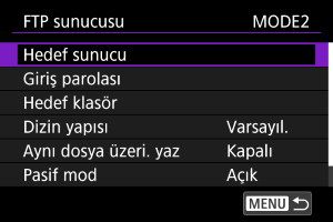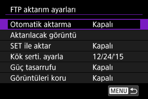 [FTP aktarım ayarları] seçildiğinde FTP aktarımı ve güç tasarrufu ile bağlantılı ayarları yapılandırabilirsiniz.