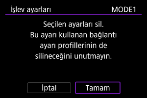 - [Seçileni temizle] seçildiğinde kayıtlı bağlantı ayarlarıyla işlev ayarlarını siler. Onay ekranında [Tamam] seçimi yapın.