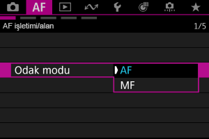 manuel odak anlamına gelir. Otomatik odak kapatıldı.