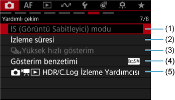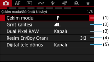 - (1) Çekim bilgi ekranı