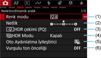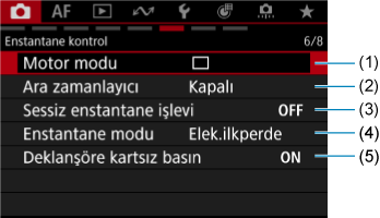 Sekme Menüleri: Fotoğraf Çekimi