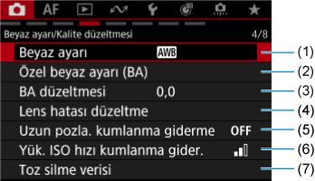 Beyaz ayarı/Kalite düzeltmesi