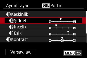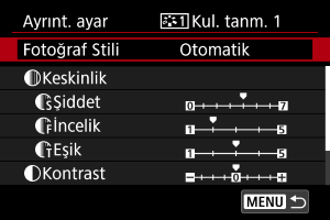 - 3. adımda [Varsay. ay.] seçilirse, ilgili Fotoğraf Stili parametresi ayarlarını varsayılan değerlerine çevirebilirsiniz.