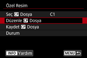 Özel resim dosyası ayarlarını [Özel Resim] menüsünden inceleyebilirsiniz.