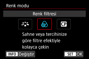 Tercih ettiğiniz video veya fotoğraf görüntüsü özelliklerini Fotoğraf Stili, Renk Filtresi veya Özel Fotoğraf menüsünden ayarlayabilirsiniz.