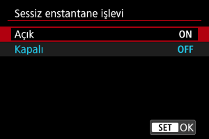 Sessiz deklanşör işlevi ayarları aşağıdaki gibi kısıtlar.