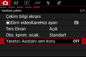 [] modunda kullanılan Yaratıcı Asistanı ayarlarını saklayarak, sonraki çekimlerde efekti tekrar seçme adımını atlayabilirsiniz.