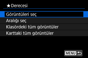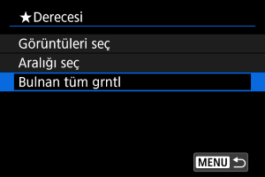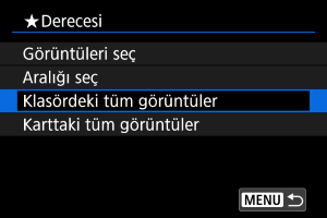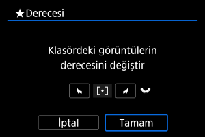 : Derecesi] altında [Klasördeki tüm görüntüler] veya [Karttaki tüm görüntüler], olarak ayarlanırsa, karttaki veya klasördeki tüm görüntüler derecelendirilir.