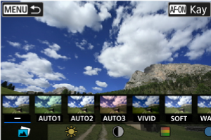 tuşuna basarak [VIVID], [SOFT] veya diğer önayar efektlerini seçebilirsiniz. Fotoğraf makinesi, görüntü koşullarına göre [AUTO1], [AUTO2] ve [AUTO3] efektlerini önerir.