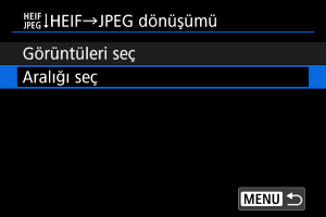 HDR çekimle kaydedilen HEIF görüntüleri dönüştürebilir ve bunları JPEG görüntüler olarak kaydedebilirsiniz.