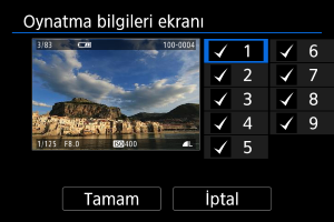 • Adımları tekrarlayarak görüntülemek istediğiniz her ekran sayısına bir onay işareti [Onay işareti] koyun, sonra [Tamam] tuşuna basın.