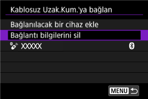 Bağlantı bilgilerini silebilirsiniz. Bağlı BR-E1 üniteleri için eşleştirme bilgileri silinecektir.