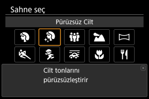 Cildi daha güzel gösteren çekimler için [] (Pürüzsüz cilt) modunu kullanın. Görüntü işlenerek ciltler daha pürüzsüz gösterilir.