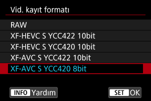 ] seçeneğinden bir alt video kayıt formatı seçebilirsiniz.