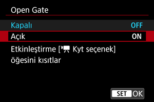 Bu özelliklerden herhangi biri ayarlandığında veya kullanıldığında Open Gate devre dışı bırakılır.