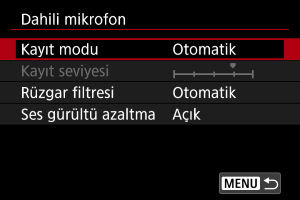 [Dahili mikrofon] olarak ayarlandığında