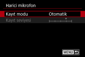 [Harici mikrofon] olarak ayarlandığında