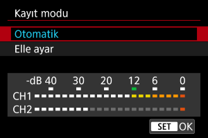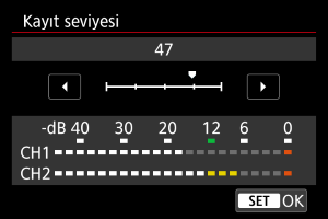 Ses kayıt seviyesini gerektiği gibi ayarlayabilirsiniz. [Kayıt seviyesi] içinde seviyeyi ayarlayın.