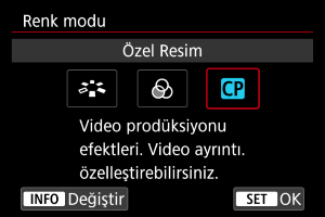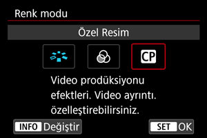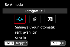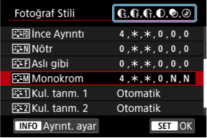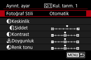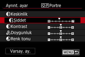- 3. adımda [Varsay. ay.] seçilirse, ilgili Fotoğraf Stili parametresi ayarlarını varsayılan değerlerine çevirebilirsiniz.