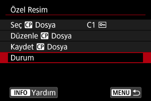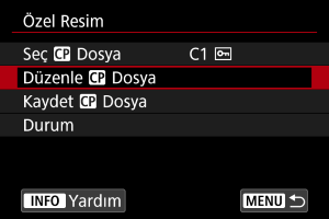 Özel resim dosyası ayarlarını [Özel Resim] menüsünden inceleyebilirsiniz.