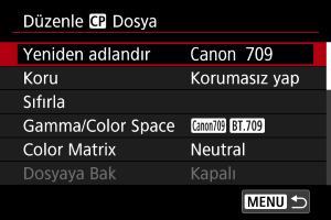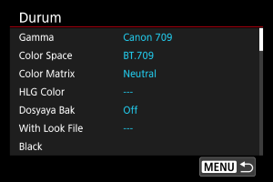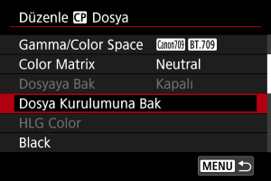- Kayıttan sonra [Gamma/Color Space], [HLG Color] veya [Over 100%] ayarlarını değiştirirseniz kayıtlı bir görünüm dosyası kullanılamaz.