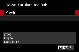 En fazla 20 dosya kaydedilebilir. 20'den fazla dosya kaydedilmemişse, dosyayı kaydettiğinizde [Yeni Dosya] görüntülenir. 20 dosya kaydedilmişse, kaydettiğiniz yeni dosyalarla birlikte dosyaların üzerine yazılır.