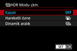 - Normal, HDR dışı çekimler için [Kapalı] seçimi yapın.