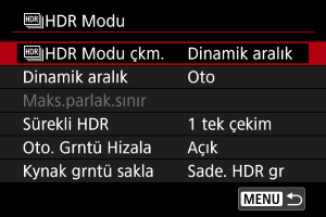 HDR Modu çkm] seçimi yapın.