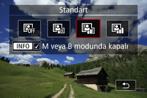 tuşuna basarak [M veya B modunda kapalı] için [