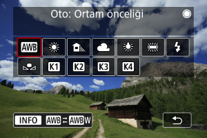 kadranını çevirerek bir beyaz ayarı seçeneği belirleyin.