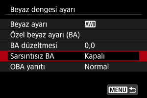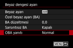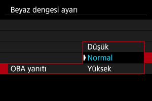 Otomatik beyaz dengesi yanıt hassasiyetini ayarlayabilirsiniz. Çekim koşullarına uygun üç farklı yanıt hassasiyeti seviyesinden birini seçin.