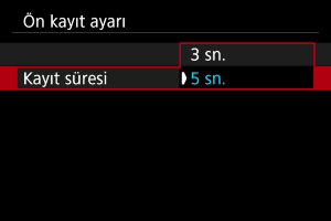 - Kayıt manuel olarak başlatılmadan önce ön kayıt için süreyi seçin.