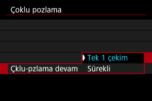 - [Sürekli] seçeneğinde çoklu poz çekimi 2. adımda [Kapalı] olarak ayarlanana kadar devam eder.