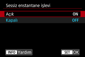 1. [Çekim: Sessiz enstantane işlevi] () seçimi yapın.