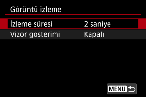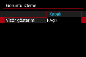 Çekimden hemen sonra çekimlerinizi vizörde görüntülemek için [Açık] ayarı yapın.