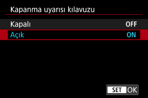 : Kapanma uyarısı kılavuzu] seçeneğini [Kapalı] olarak ayarlayın.