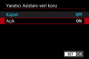 [: Yaratıcı Asistanı veri koru] () seçimi yapın.