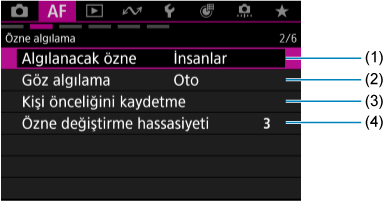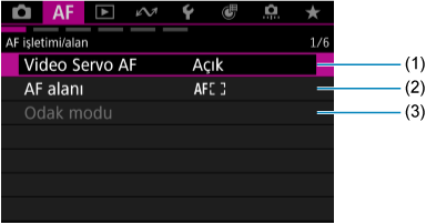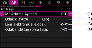 - Odak modu düğmesi olmayan lensler kullanıldığında [Odak modu] görüntülenir.