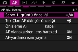- [AF işle. özelleş.] (fotoğraf çekiminde)
