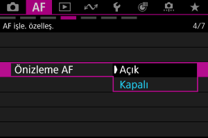 : Önizleme AF] ayarı [Kapalı] olur.
