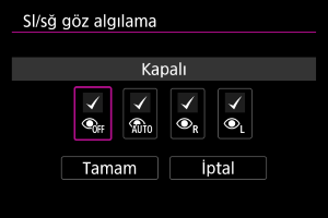 : Sl/sğ göz algılama] seçeneğinin sağ tarafındaki yıldız “*” işareti varsayılan ayarın değiştirildiğini belirtir.