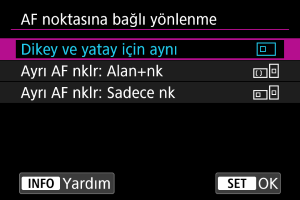 Dikey ve yatay çekim için ayrı AF alanı türleri veya AF noktalarının konumları ayarlayabilirsiniz.