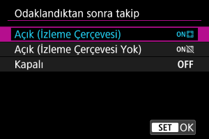 Takip çerçevesi görüntüsünü etkinleştirmeden özelliği etkinleştirir.