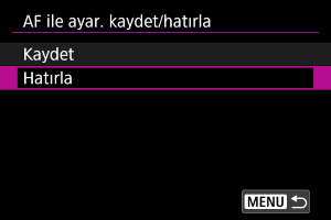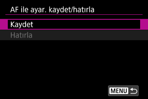 AF ile ilgili ayarları kaydet/hatırla